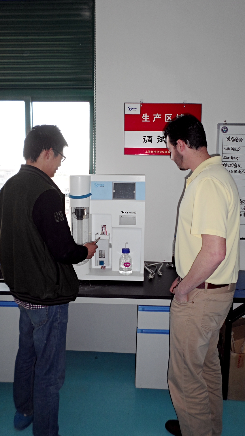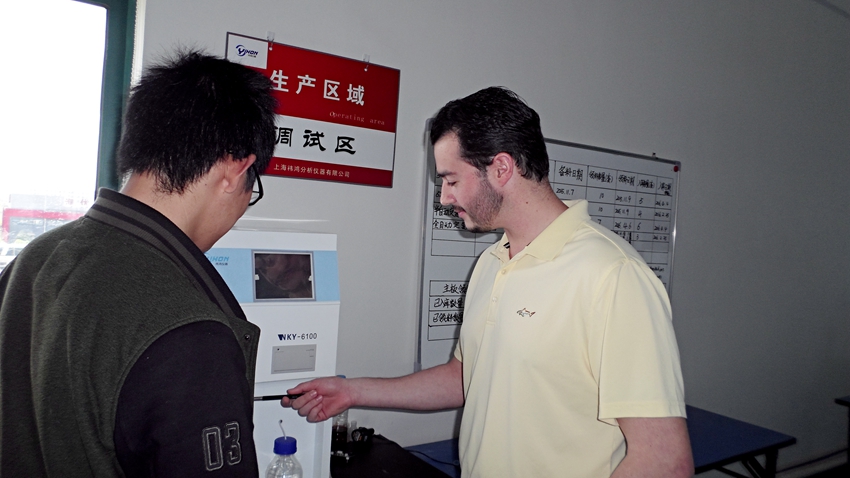 熱烈歡迎著名計量滴定泵生產廠家技術部經理Patrick De Duvo先生回訪上海祎鴻凱氏定氮儀公司,Patrick De Duvo先生到車間與我司技術部負責人深入交流,并對我司的高端研發技術和合理使用計量泵的先進思路,給予高度評價。