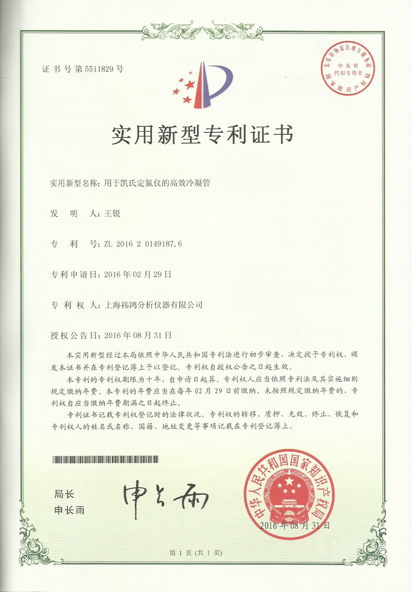 熱烈祝賀上海祎鴻凱氏定氮儀再添兩項(xiàng)技術(shù)專(zhuān)利